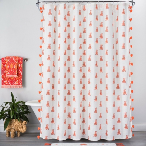 Boho Shower Curtain Bright Orange Paisley Etsy